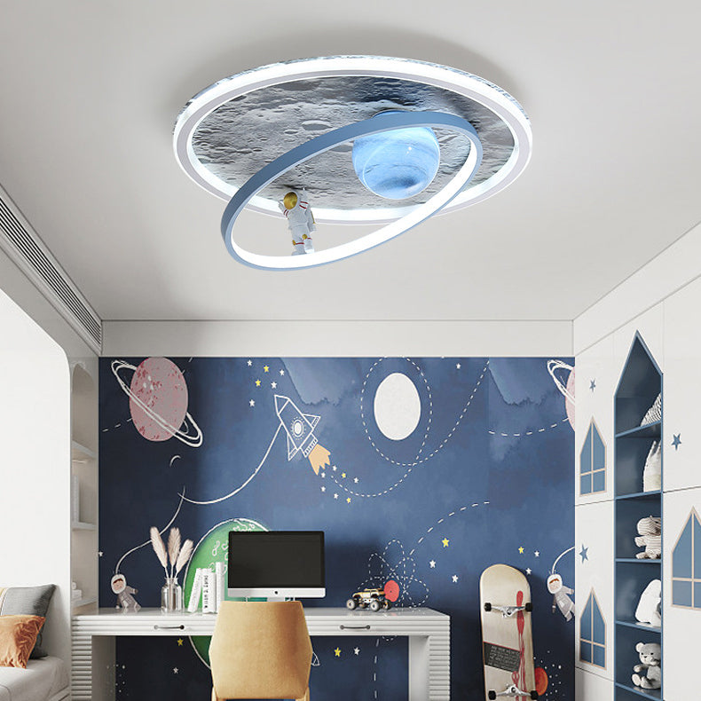 Contemporary Scandinavian Kids Iron Aluminum Resin Acrylic Round Moon Astronaut LED Flush Mount Ceiling Light For Bedroom