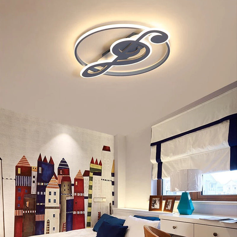 Contemporary Scandinavian Music Note Round Acrylic Metal LED Flush Mount Ceiling Light For Bedroom