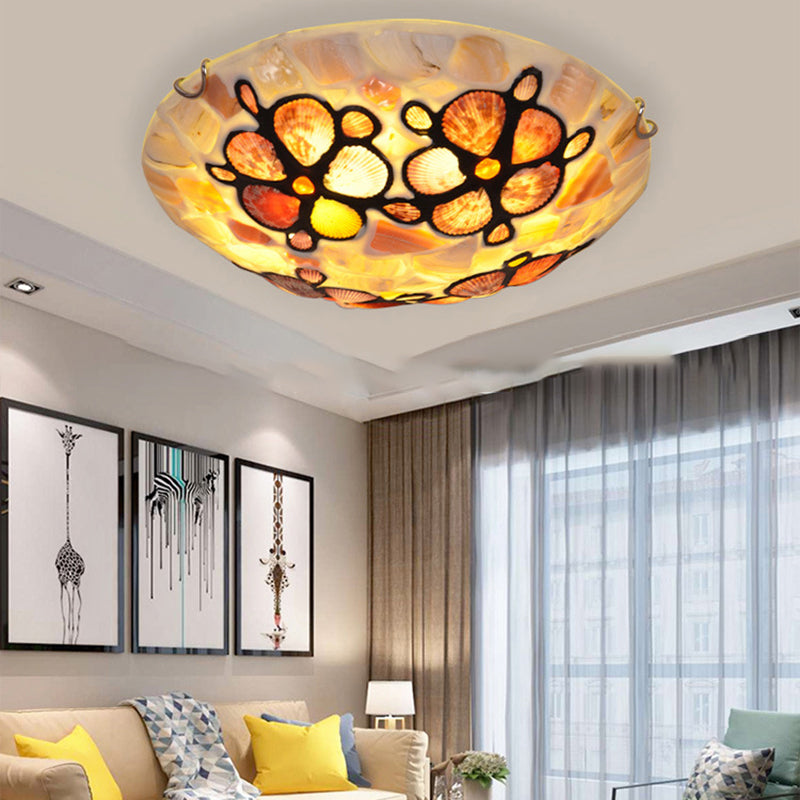 Traditional Japanese Bowl Branch Glass Iron 3/5/8 Light Semi-Flush Mount Ceiling Light For Bedroom
