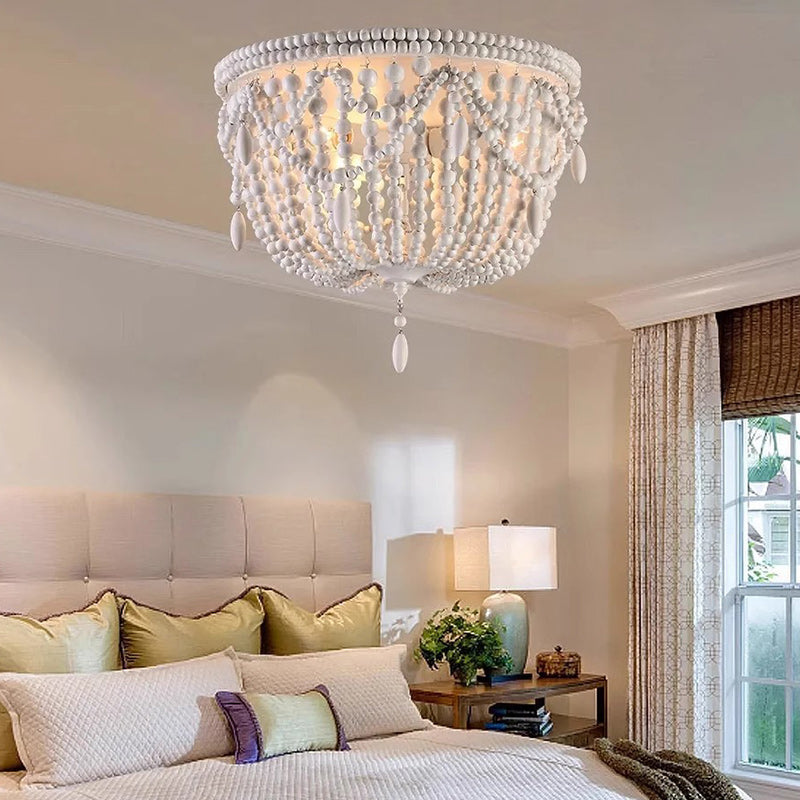 Contemporary Boho Semicircle Wooden Beads Iron 3/5/6 - Light Flush Mount Ceiling Light For Bedroom