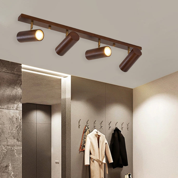 Modern Minimalist Cylinder Rectangle Rubberwood LED Spotlight Semi-Flush Mount Ceiling Light For Living Room
