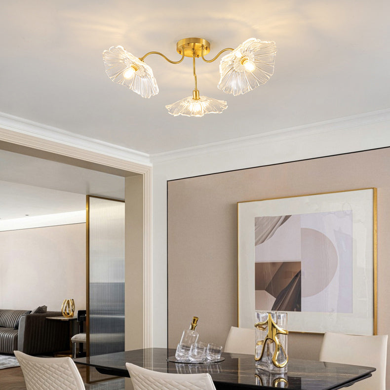 Modern Minimalist Branch Flower Copper Frame Glass Shade 3/5/6 Light Semi-Flush Mount Ceiling Light For Living Room