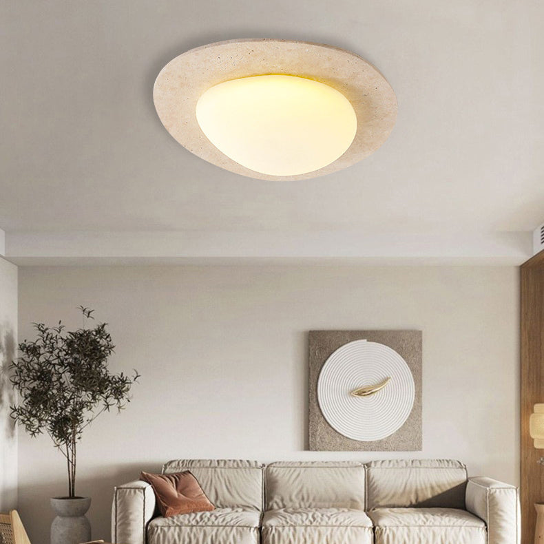 Contemporary Nordic Travertine Plastic Cobblestone Elliptical LED Flush Mount Ceiling Light For Living Room