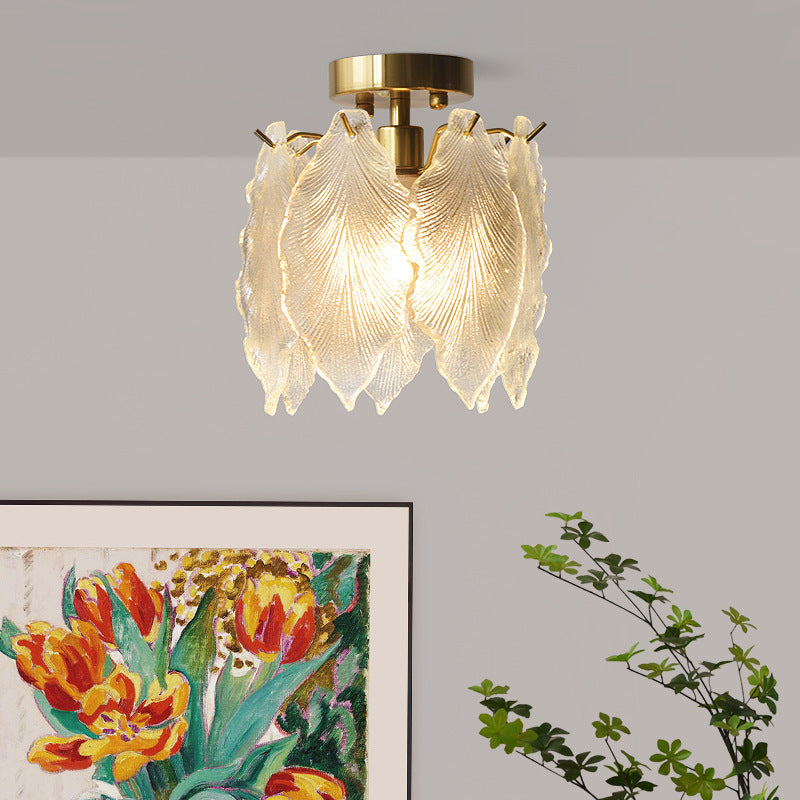 Contemporary Luxury Ribbed Leaf Pearl Iron Glass 1-Light Semi-Flush Mount Ceiling Light For Living Room