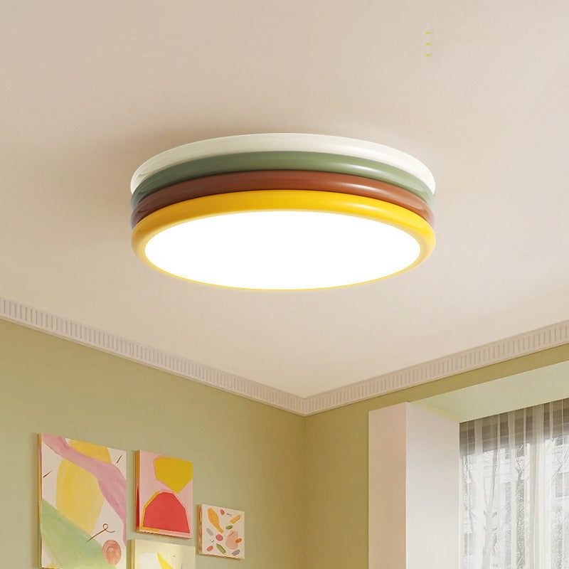 Contemporary Scandinavian Color Burger Stack Iron Acrylic LED Flush Mount Ceiling Light For Bedroom