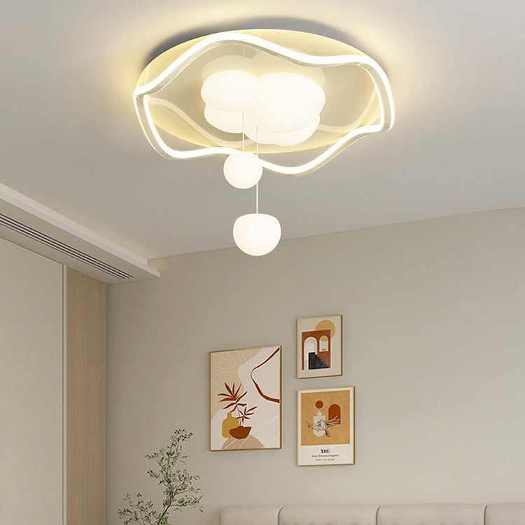 Modern Minimalist Cream Wave Pattern Round Glass Hardware LED Flush Mount Ceiling Light For Bedroom