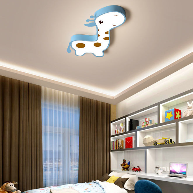 Contemporary Creative Animal Deer Acrylic Hardware LED Kids Flush Mount Ceiling Light For Bedroom