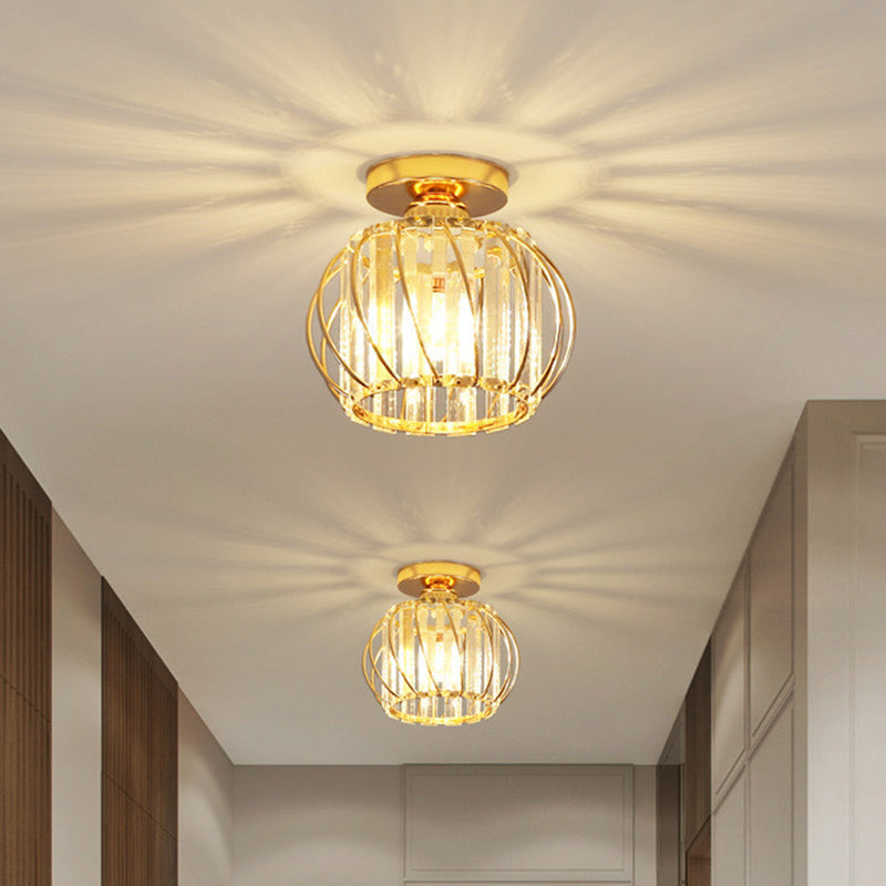 Modern Minimalist Hollowed Out Round Dome Iron Crystal 1-Light Semi-Flush Mount Ceiling Light For Bedroom