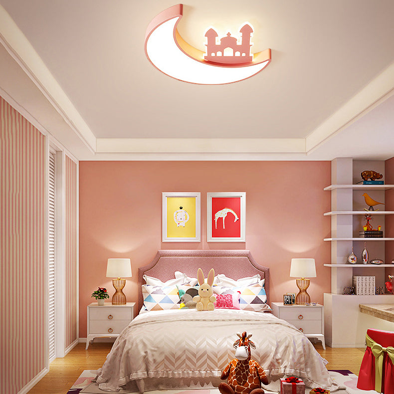 Contemporary Creative Moon Acrylic Hardware LED Kids Flush Mount Ceiling Light For Bedroom