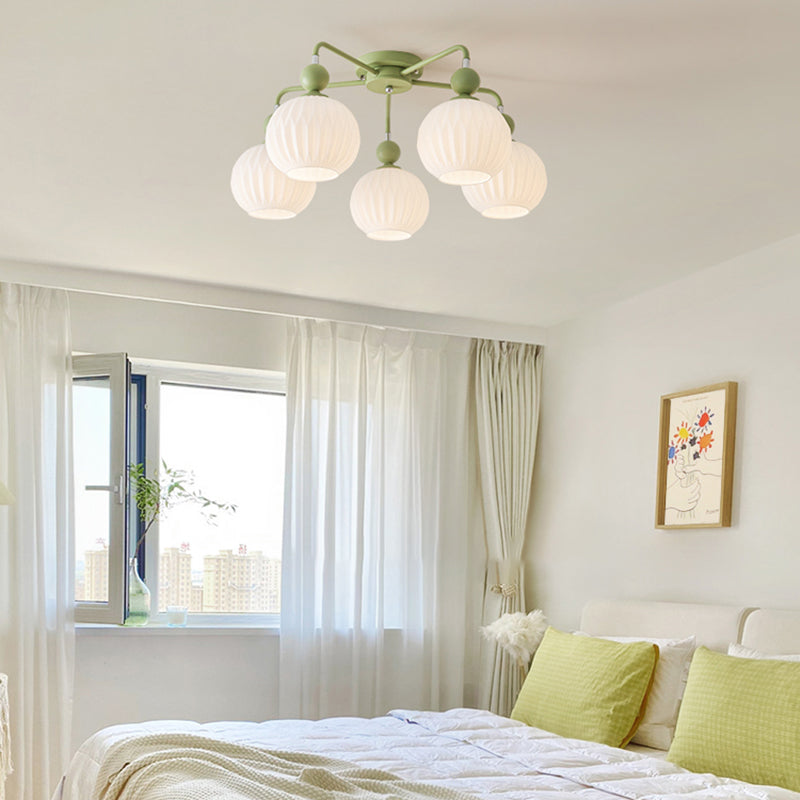 Contemporary Nordic Cream Ribbed Hardware Glass 4/5/8 Light Flush Mount Ceiling Light For Dining Room