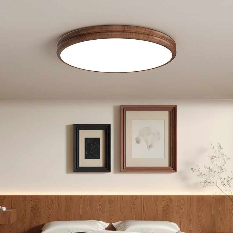 Contemporary Retro Iron Acrylic Round Wood Grain LED Flush Mount Ceiling Light For Bedroom