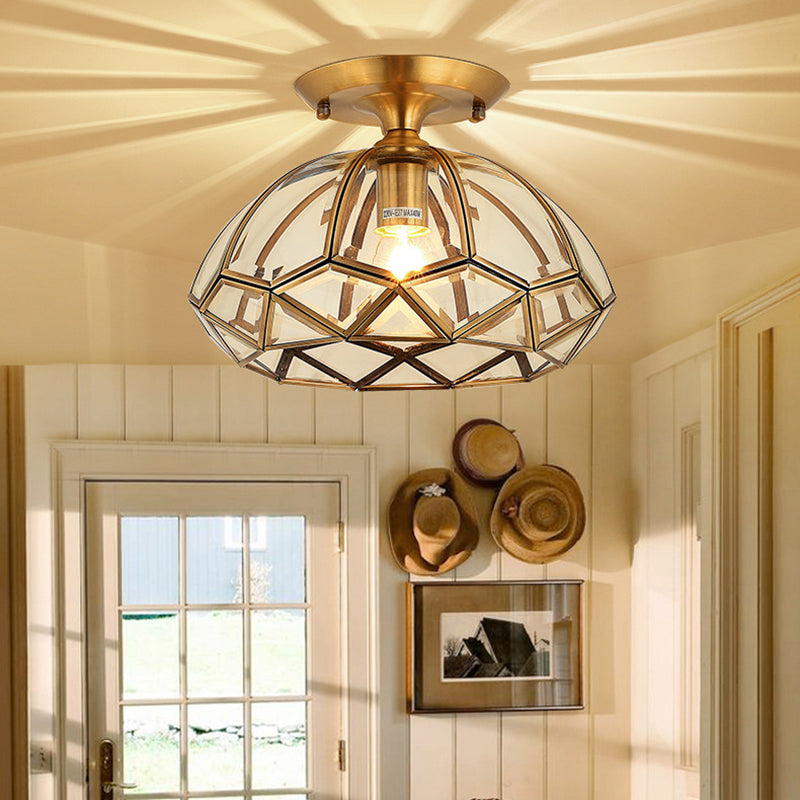 Contemporary Luxury Polygonal Quadrilateral Copper Glass 1-Light Semi-Flush Mount Ceiling Light For Living Room