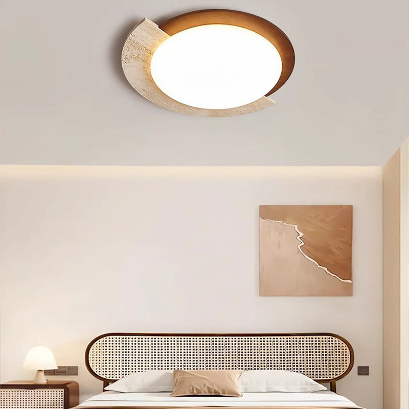 Traditional Vintage Round Beige Travertine Plastic LED Flush Mount Ceiling Light For Living Room