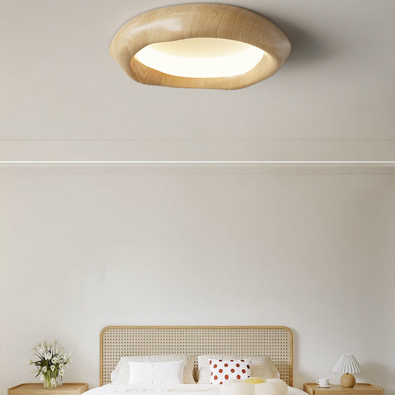 Modern Minimalist Cream Irregular Round Iron Acrylic LED Flush Mount Ceiling Light For Bedroom