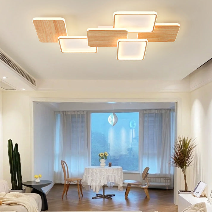 Contemporary Nordic Iron Aluminium Silica Square Combo Wood Grain LED Flush Mount Ceiling Light For Living Room
