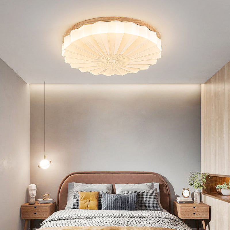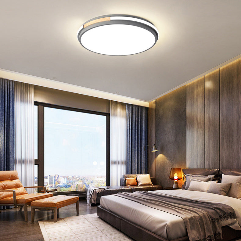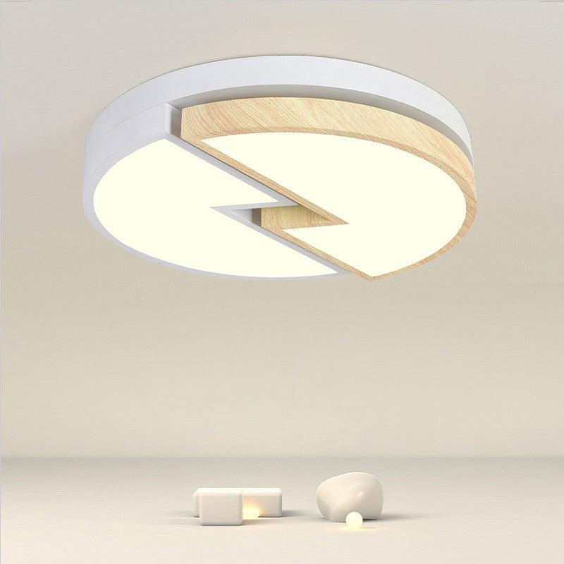 Contemporary Nordic Round Wood Grain Lightning Iron Acrylic LED Flush Mount Ceiling Light For Bedroom
