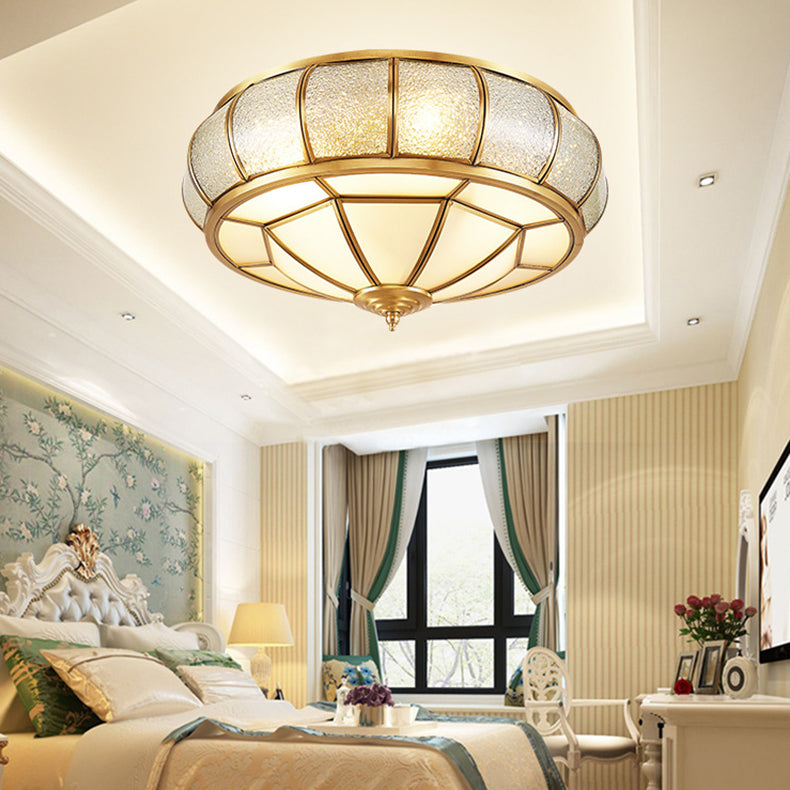 Traditional European Flying Saucer Shaped Half Round Globe Copper Glass 3/4/6 Light Flush Mount Ceiling Light For Living Room