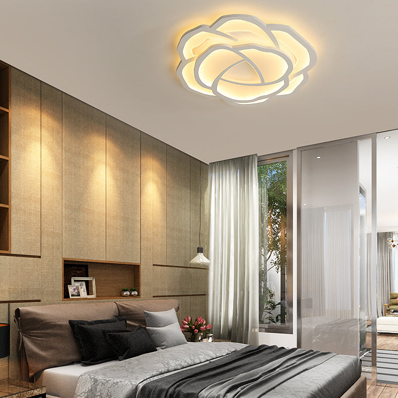 Modern Minimalist Rose Shape Iron Acrylic LED Flush Mount Ceiling Light For Bedroom