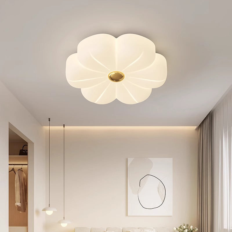 Modern Minimalist Cream Petal Iron PE LED Flush Mount Ceiling Light For Bedroom