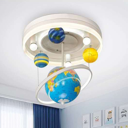 Contemporary Creative Kids Round Orb Globe Hardware Acrylic LED Flush Mount Ceiling Light For Bedroom