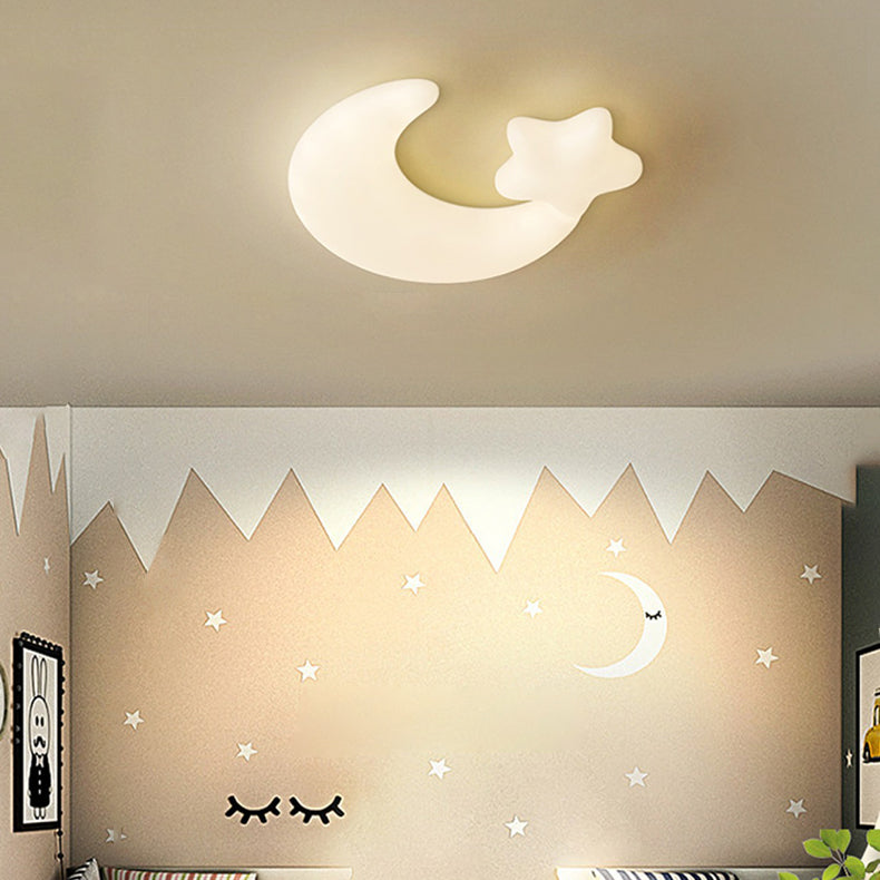 Modern Minimalist Moon Star PE Iron LED Flush Mount Ceiling Light For Bedroom