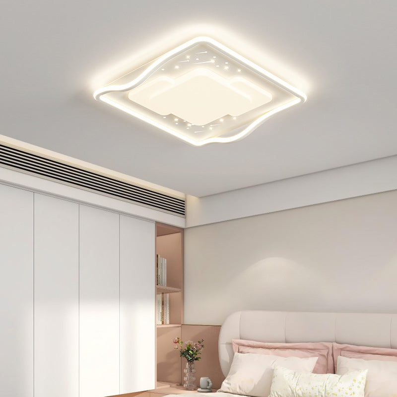 Contemporary Creative Round Square Wave Iron Acrylic LED Flush Mount Ceiling Light For Bedroom