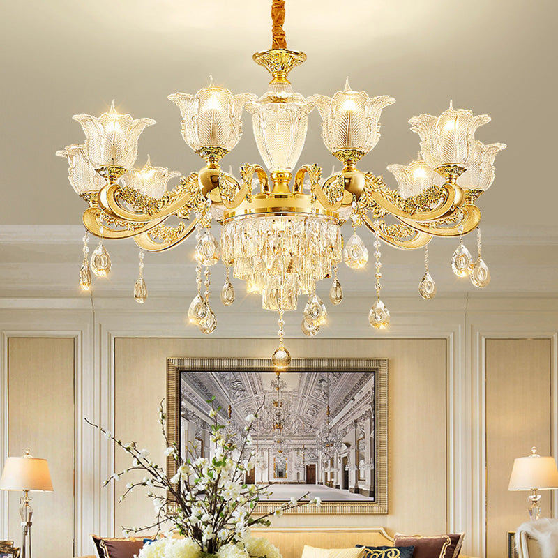 Traditional French Twig Shape Round Zinc Alloy Crystal Glass 6/8/10/12/15 Light Chandelier For Living Room