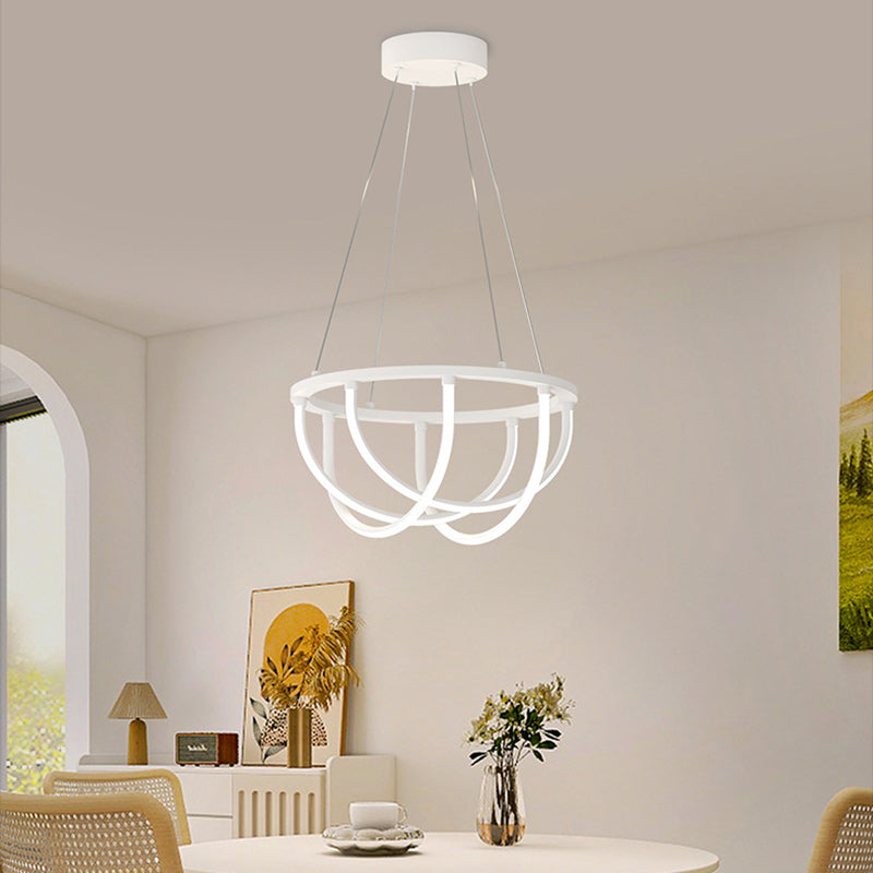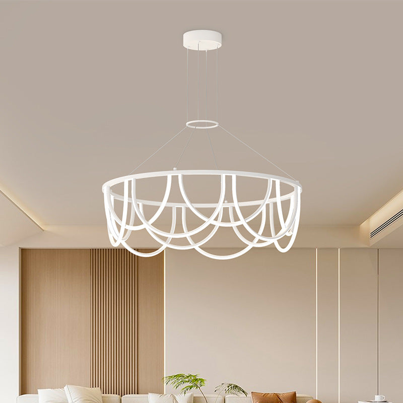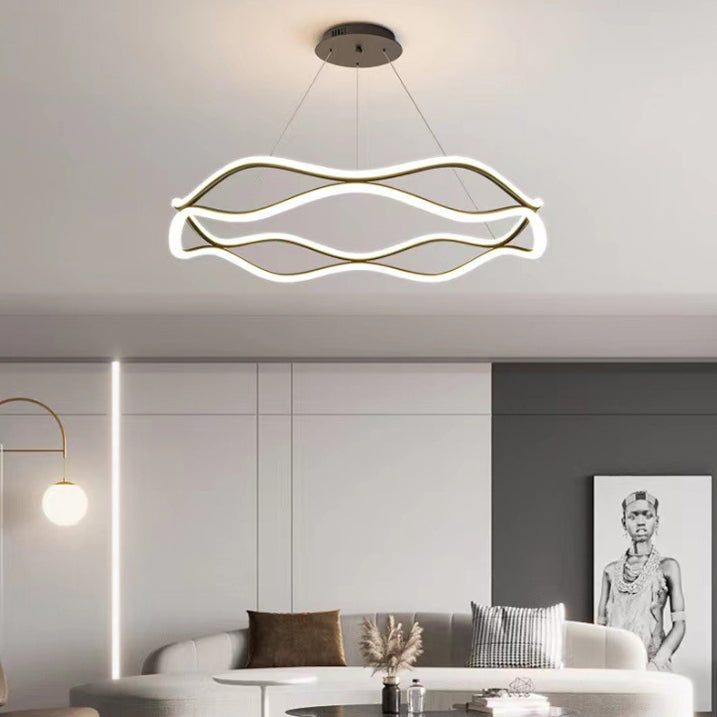 Modern Minimalist Long Line Crossover Round Iron Aluminum Silicone LED Chandelier For Living Room