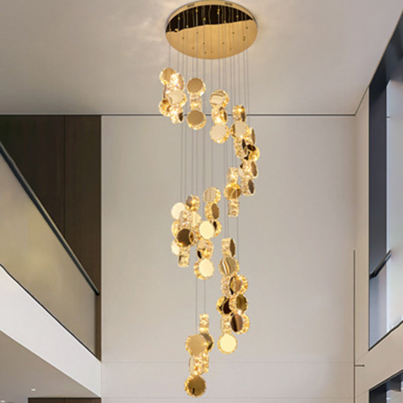 Modern Luxury Spiral Staircase Hanging Long Round Crystal Stainless Steel Loft LED Chandelier For Living Room