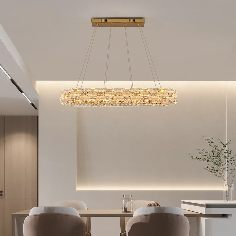 Contemporary Luxury Oval Stainless Steel Crystal LED Island Light Chandelier For Dining Room