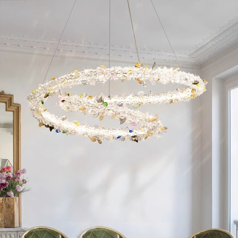 Contemporary Creative Twisted Ring Aluminum Acrylic Crystal LED Chandelier For Bedroom