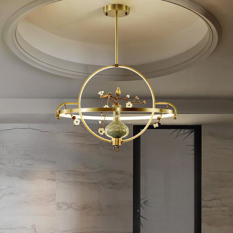 Modern Luxury Round Copper Ceramic Plum Blossom Decor LED Chandelier For Dining Room