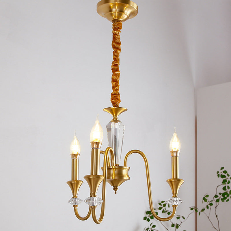 Contemporary Luxury Full Copper Crystal Candlestick 3/6/8-Light Chandelier For Living Room