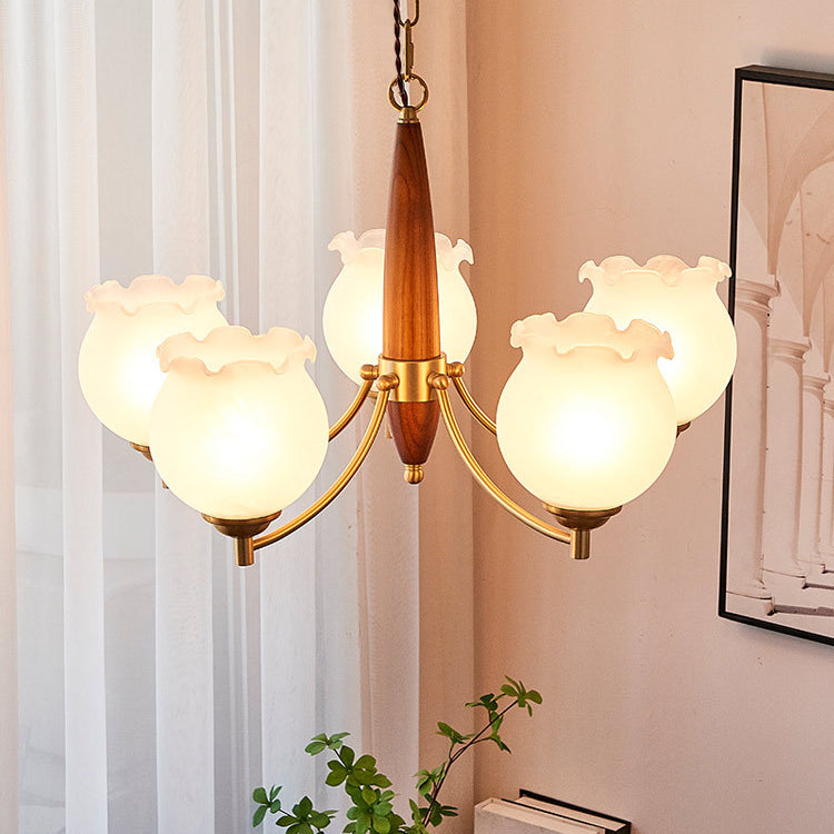 Traditional French Copper Wood Glass Tulip Flower Bud 1/3/5/8 Light Pendant Light Chandeliers For Bedroom