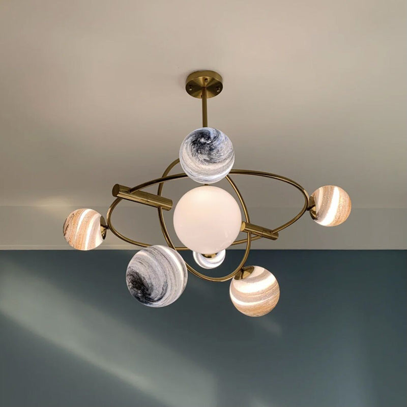 Contemporary Nordic Planet Round Glass Iron 7/13-Light Chandelier For Living Room