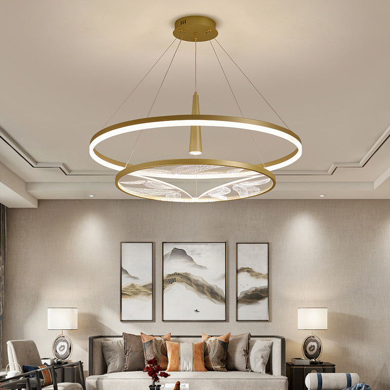 Traditional Chinese Iron Aluminium Acrylic Round 2-Tier LED Chandeliers For Living Room