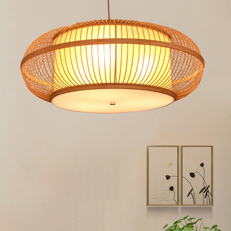 Traditional Japanese Weaving Handmade Bamboo Round Cylinder 3/4 Light Chandeliers For Dining Room