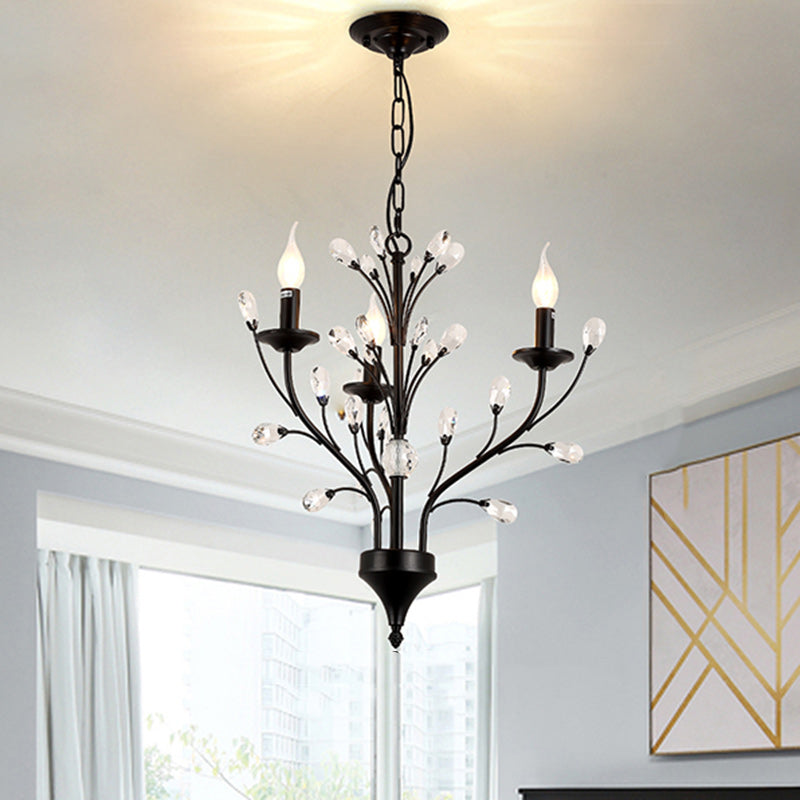 Traditional French Candle Dendritic Iron Crystal 3/6/9/12 Light Chandelier For Living Room