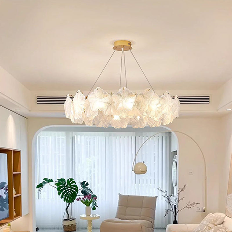Contemporary Luxury Iron Snowflake Leaf Glass Shade 10-Light Chandelier For Living Room