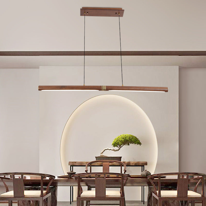 Traditional Chinese Walnut Copper Acrylic Strip Branch LED Chandeliers For Dining Room