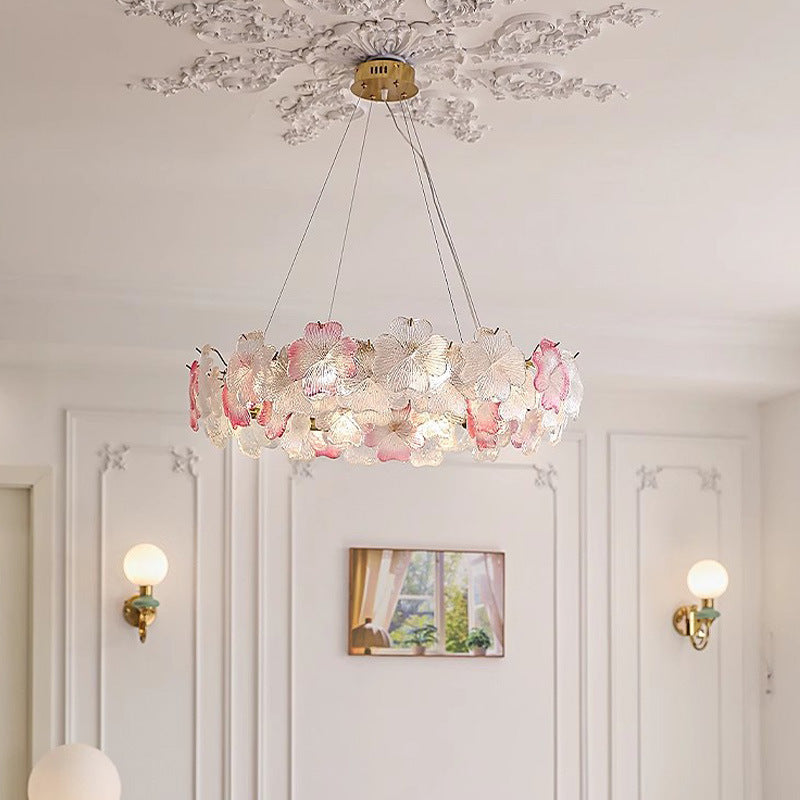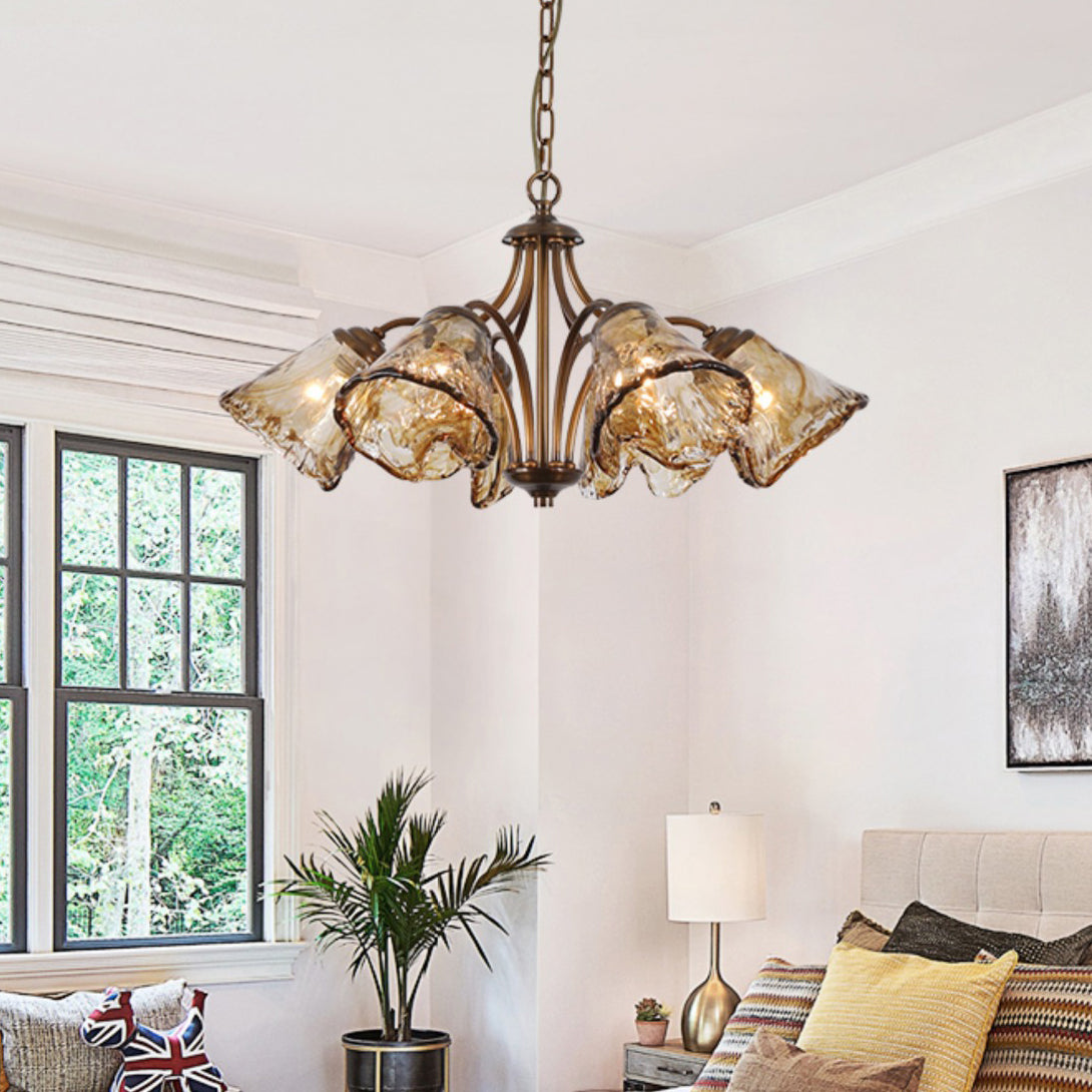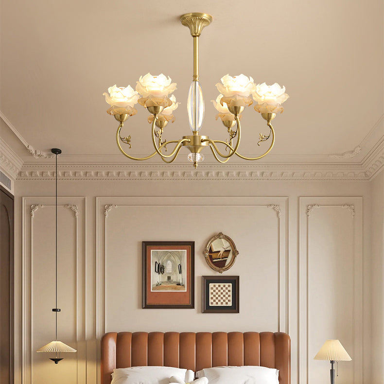 Traditional French Flower Branch Copper Glass Crystal 3/6/8 Light Chandeliers For Living Room
