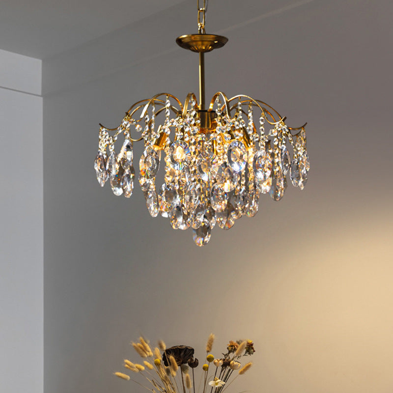 Contemporary Luxury Full Copper Frame Dazzling Crystal String 6-Light Chandelier For Living Room