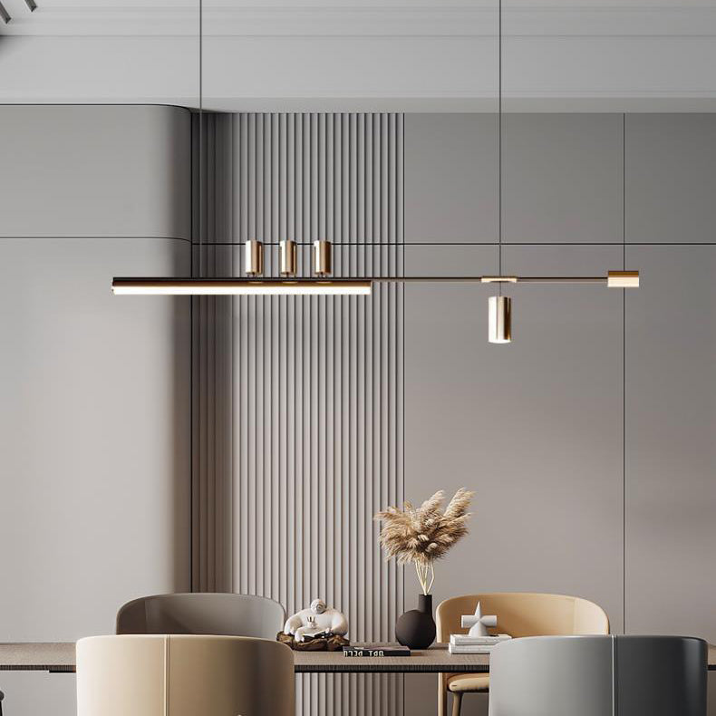 Modern Minimalist Aluminum Iron Cylinder Long Strip LED Island Light Chandeliers For Dining Room