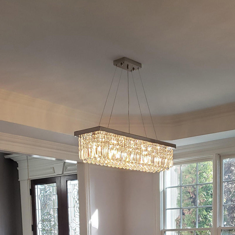 Contemporary Luxury Rectangular Crystal Steel 6-Light Chandelier For Living Room