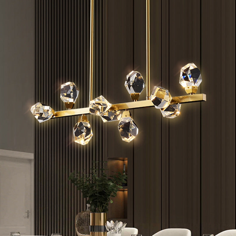 Contemporary Luxury Long Irregular Crystal Full Brass Frame LED Island Light Chandelier For Dining Room