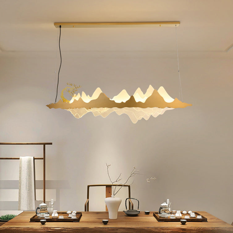 Traditional Chinese Landscape Iron Acrylic LED Island Light Chandelier For Living Room