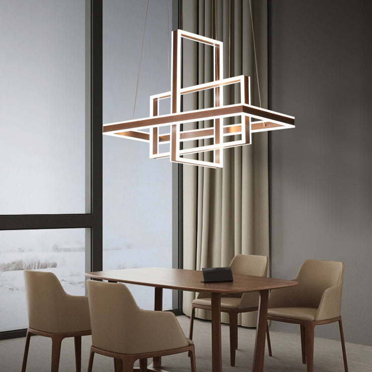 Modern Minimalist Rectangular Quadrilateral ABS Aluminum LED Chandelier For Bedroom