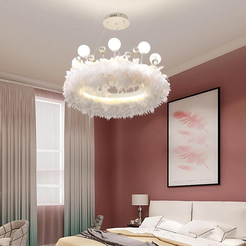 Contemporary Creative Crown Acrylic Ring Feather Decor LED Chandelier For Living Room