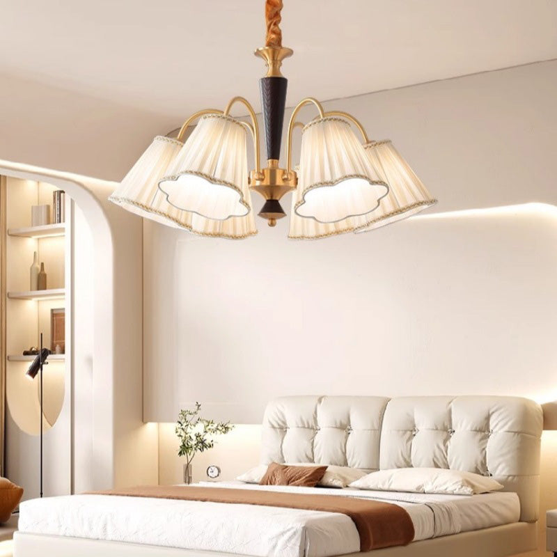 Traditional French Floral Branch Fabric Walnut Brass 3/6 Light Chandelier For Bedroom