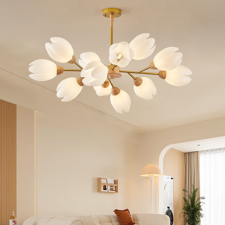 Modern Mid-Century Flower Shape Wood Rotational Molding 6/9/12 Light Chandelier For Bedroom